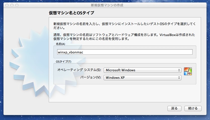 ちょっとだけ、WindwosXPを使いたくて、MacにVirtualboxをインストールしてみました。そのときのメモです。